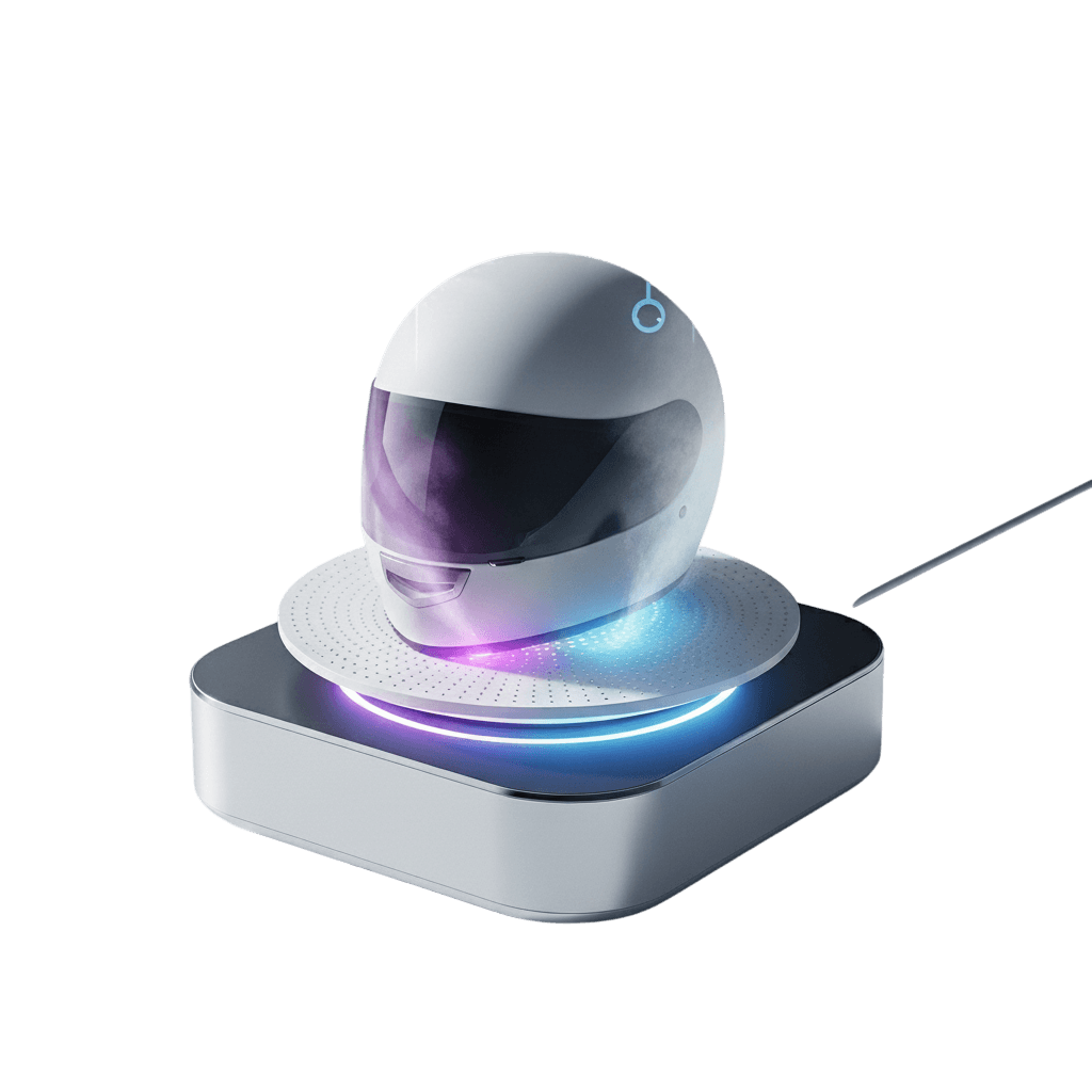 Just place your helmet and let ozone, UV-C, and HOCL neutralize odors and germs.
